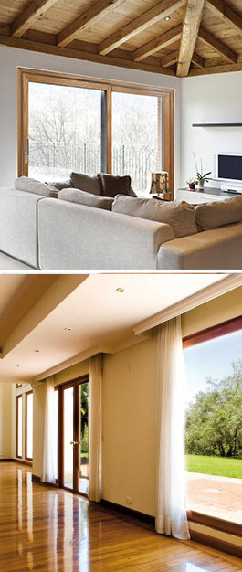 Serija profila sa prekinutim toplotnim mostom namijenjena za izradu jednokrilnih, dvokrilnih ili četverokrilnih podizno-kliznih prozora i vrata u kombinaciji sa drvenim letvicama. S unutrašnje strane izgled drvenih prozora, a s vanjske aluminijumskih. Drvene letvice: hrast, orah, trešnja, te ostale boje po narudžbi.