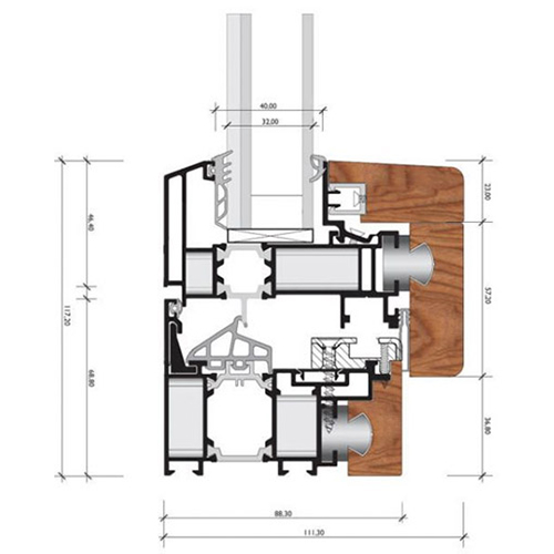 Osnovni konstruktivni materijal prozora je aluminijumski profil sa termoprekidom, koji je sa unutrašnje strane obložen drvenim profilima. Aluminijum spolja štiti drvo od atmosferskih uticaja tako da drvo ostaje nepromijenjenog izgleda i poslije 20-ak godina eksplatacije. Sam spoj aluminijuma i drveta ostvaren je posebnim kopčama koje ne prenose naprezanja do kojih dolazi usljed širenja i skupljanja materijala, te dozvoljavaju cirkulaciju vazduha sprječavajući koroziju usljed kondenzacije.
